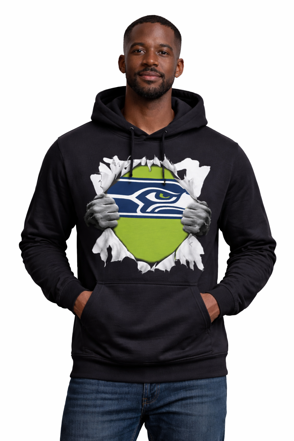 Seattle Seahawks Ripping through Black Fleece Hoodie T-Shirt