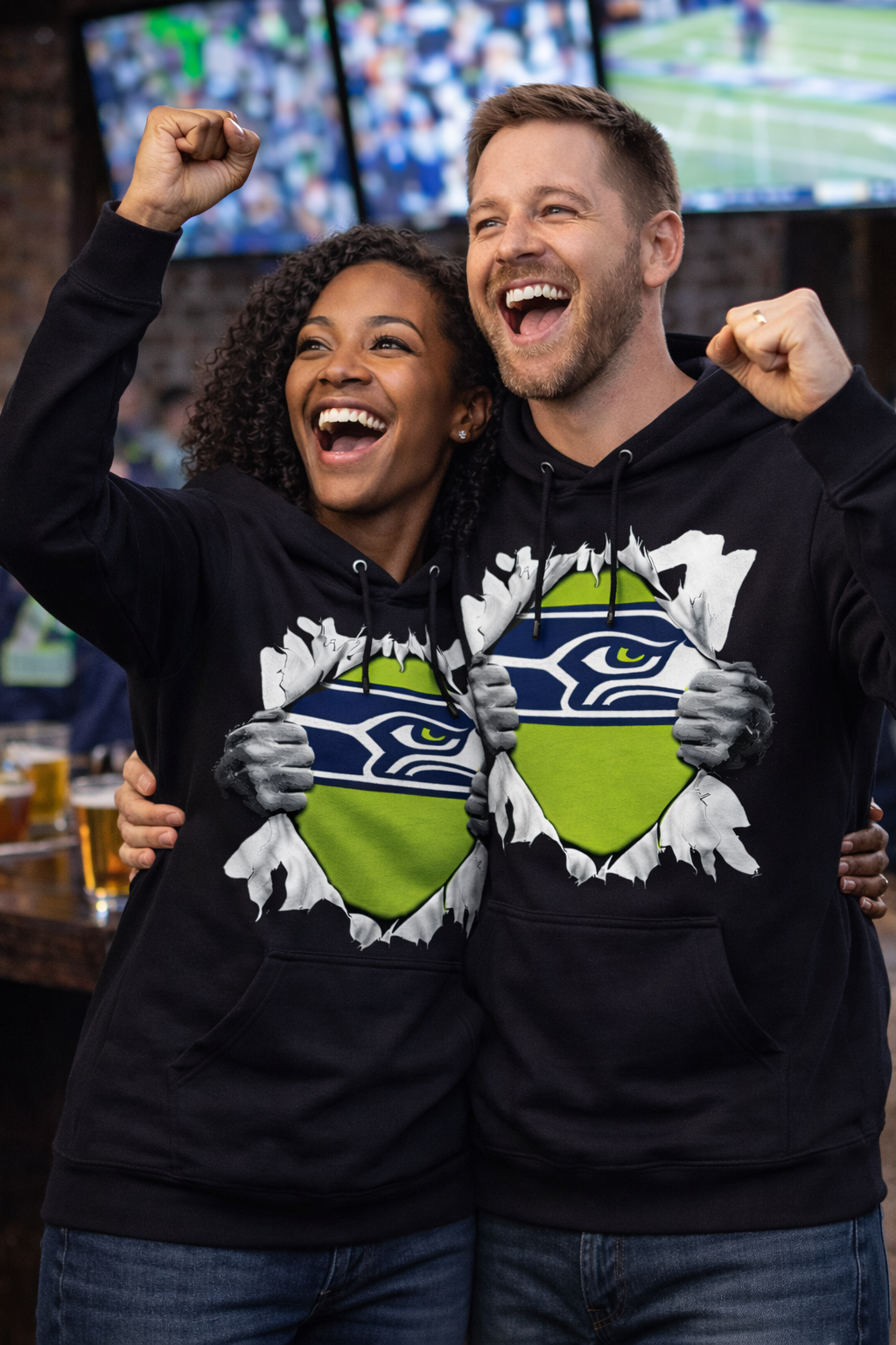 Seattle Heart Seahawks Navy Fleece Hoodie T-Shirt